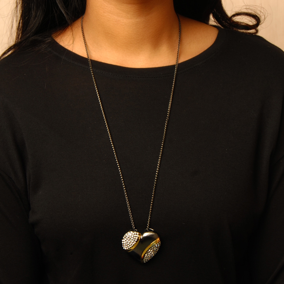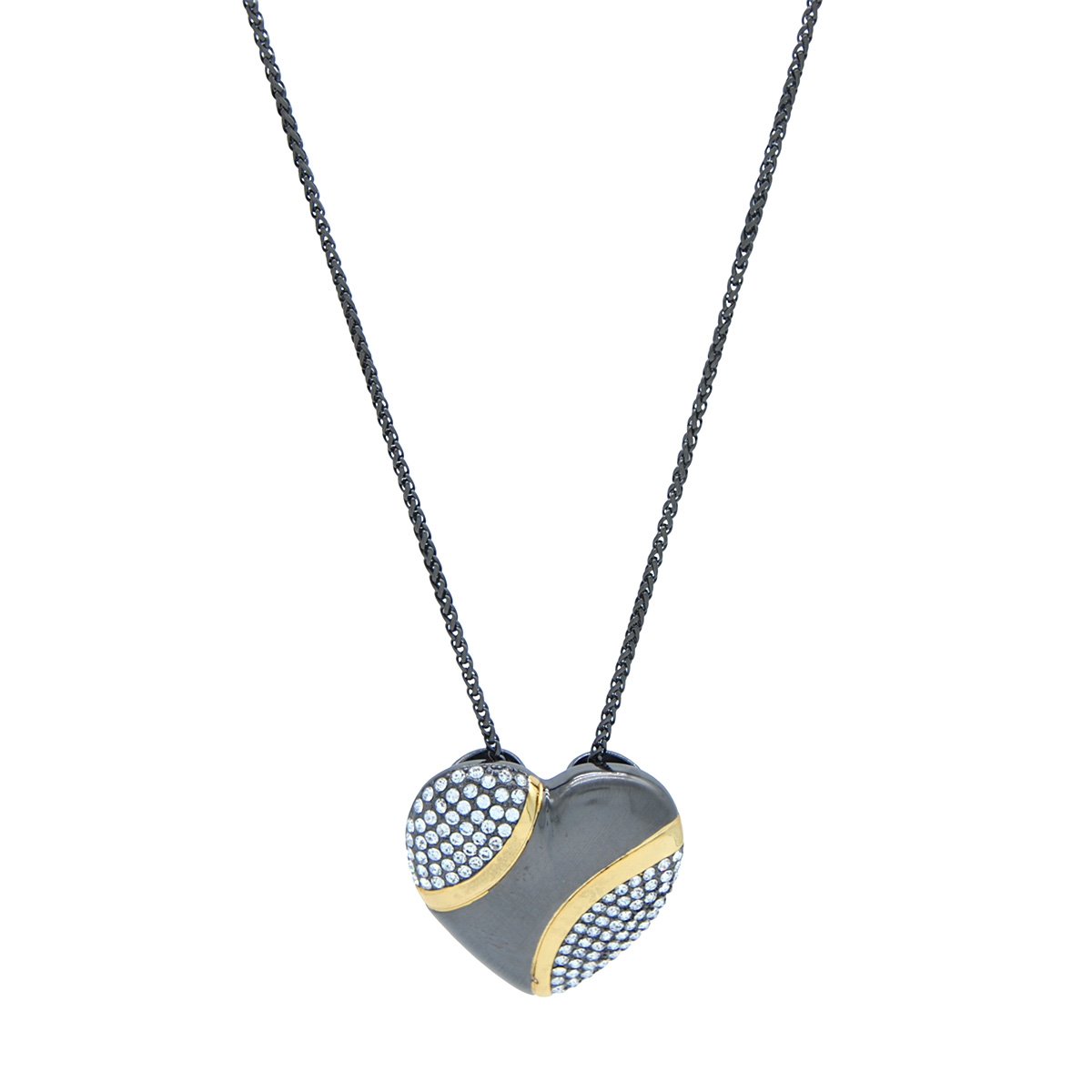 Dress it up or dress it down with our charming "Brimming With Love" neckpiece, showcasing a stunning two-tone heart set with shimmering Swarovski crystal on a sleek 28" designer chain. Nickel and lead free jewellery.
