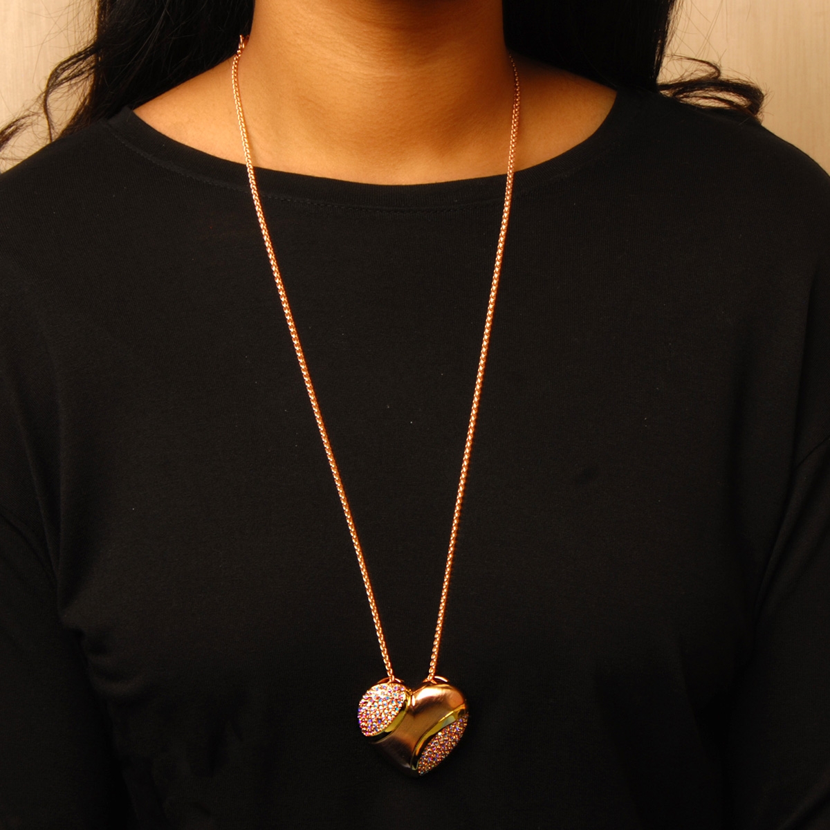 Dress it up or dress it down with our charming "Brimming With Love" neckpiece, showcasing a stunning two-tone heart set with shimmering Swarovski crystal on a sleek 28" designer chain. Nickel and lead free jewellery.