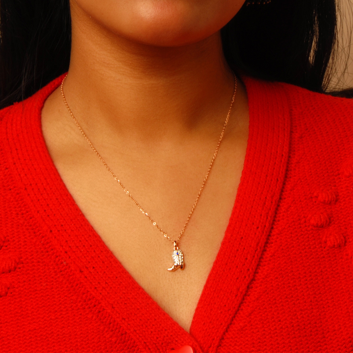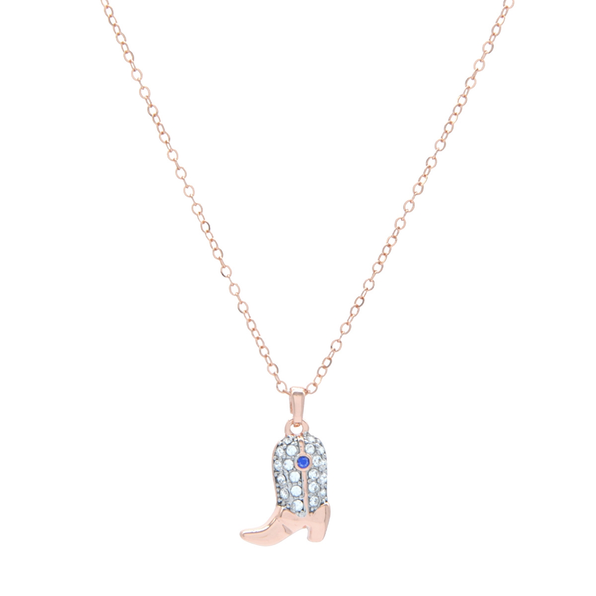 Fun and stylish with a flare for fashion, our playful "Cowgirl Sparkle" boot" pendant on a sleek designer chain is studded with Swarovski crystal to shimmer with your every move. Nickel and lead free jewellery.
