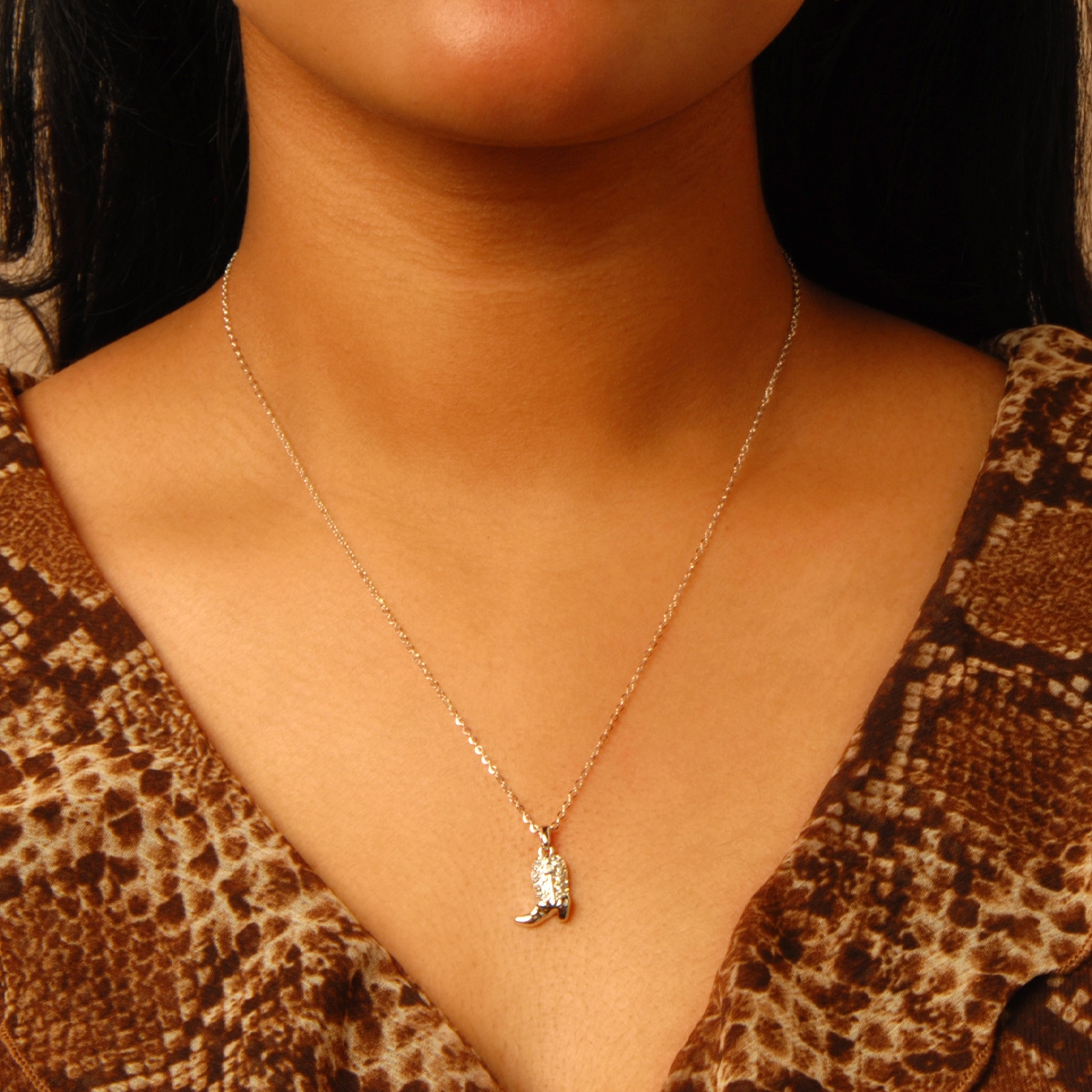 Fun and stylish with a flare for fashion, our playful "Cowgirl Sparkle" boot" pendant on a sleek designer chain is studded with Swarovski crystal to shimmer with your every move. Nickel and lead free jewellery.