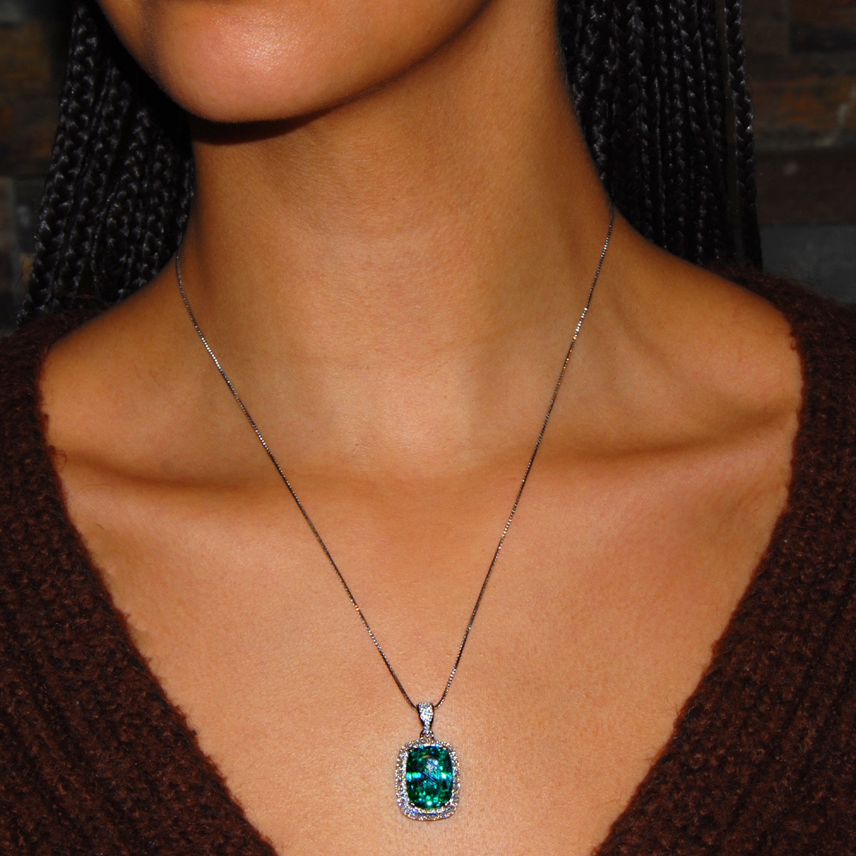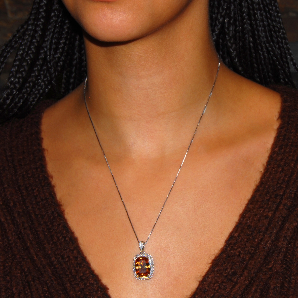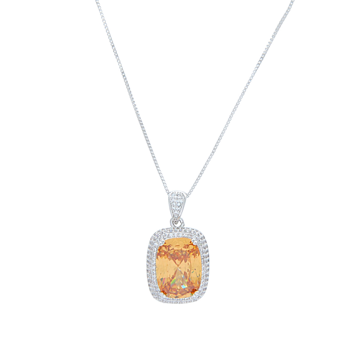Add some smooth, sophisticated sparkle to your look by adorning a touch of "Elegance & Glam"! A beautifully faceted cubic zirconia captures the light with impressive size and composition nestled in a row of clears and a sleek rhodium-finish to create a classic upgrade in contemporary style. 18" neckpiece with 2" extension. Nickel and lead free jewellery.