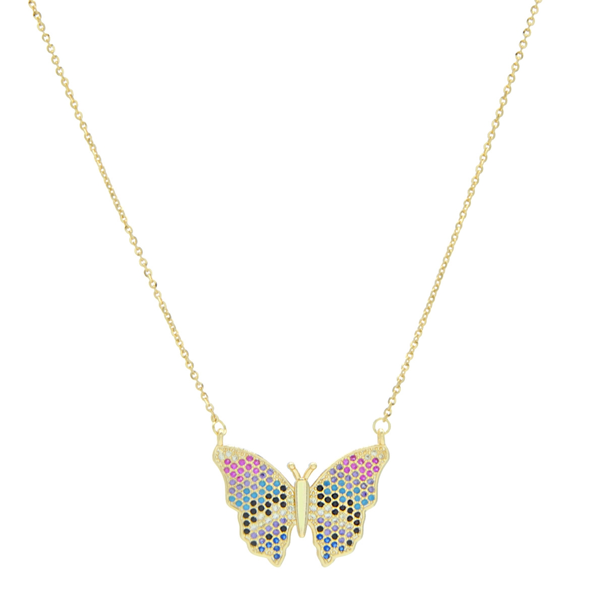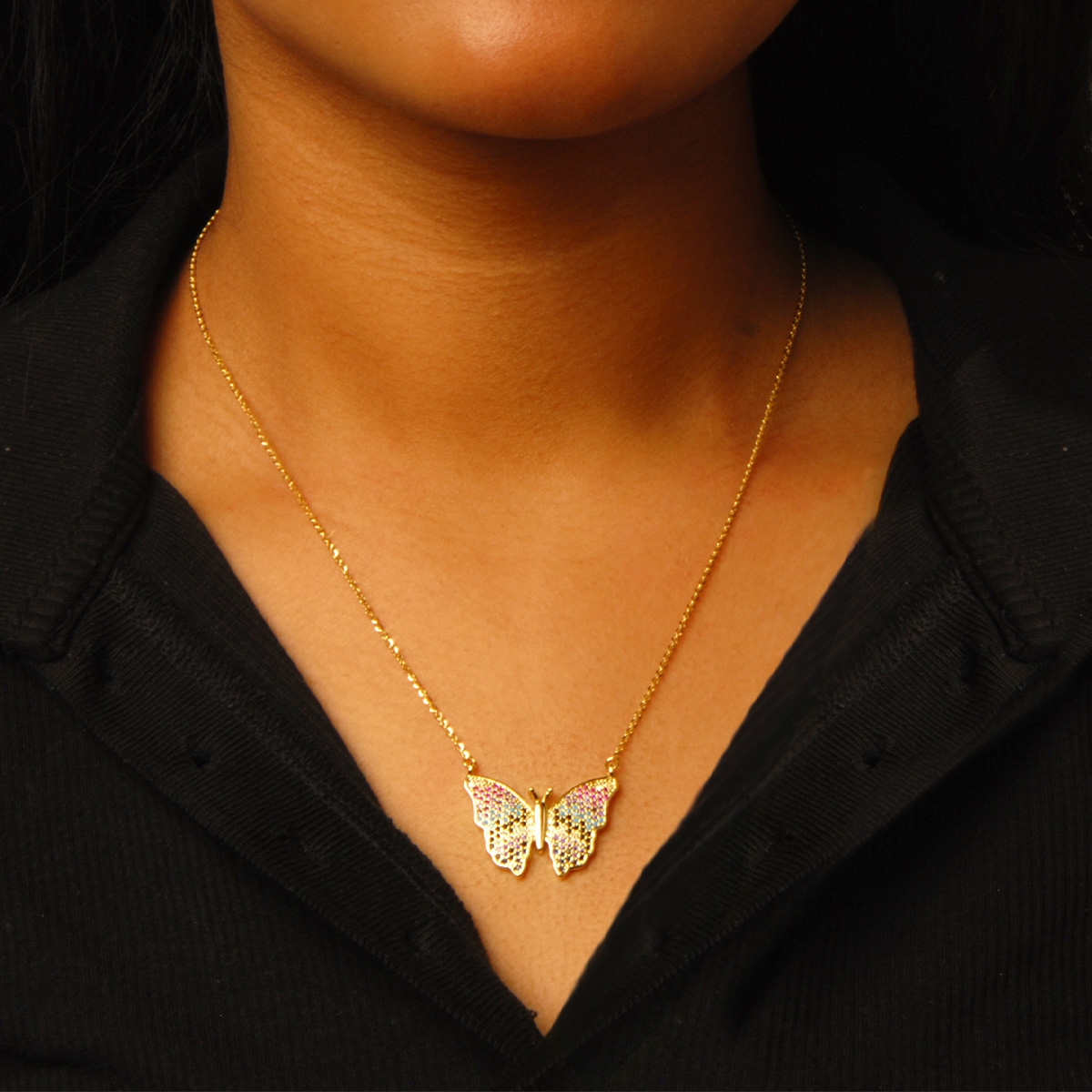 Our delightful "Flutter & Bright" butterfly neckpiece flaunts a stunning design of colorful AAA cubic zirconia adorned on an 18" designer chain to add the perfect touch of playful beauty to your look. Nickel and lead free jewellery.