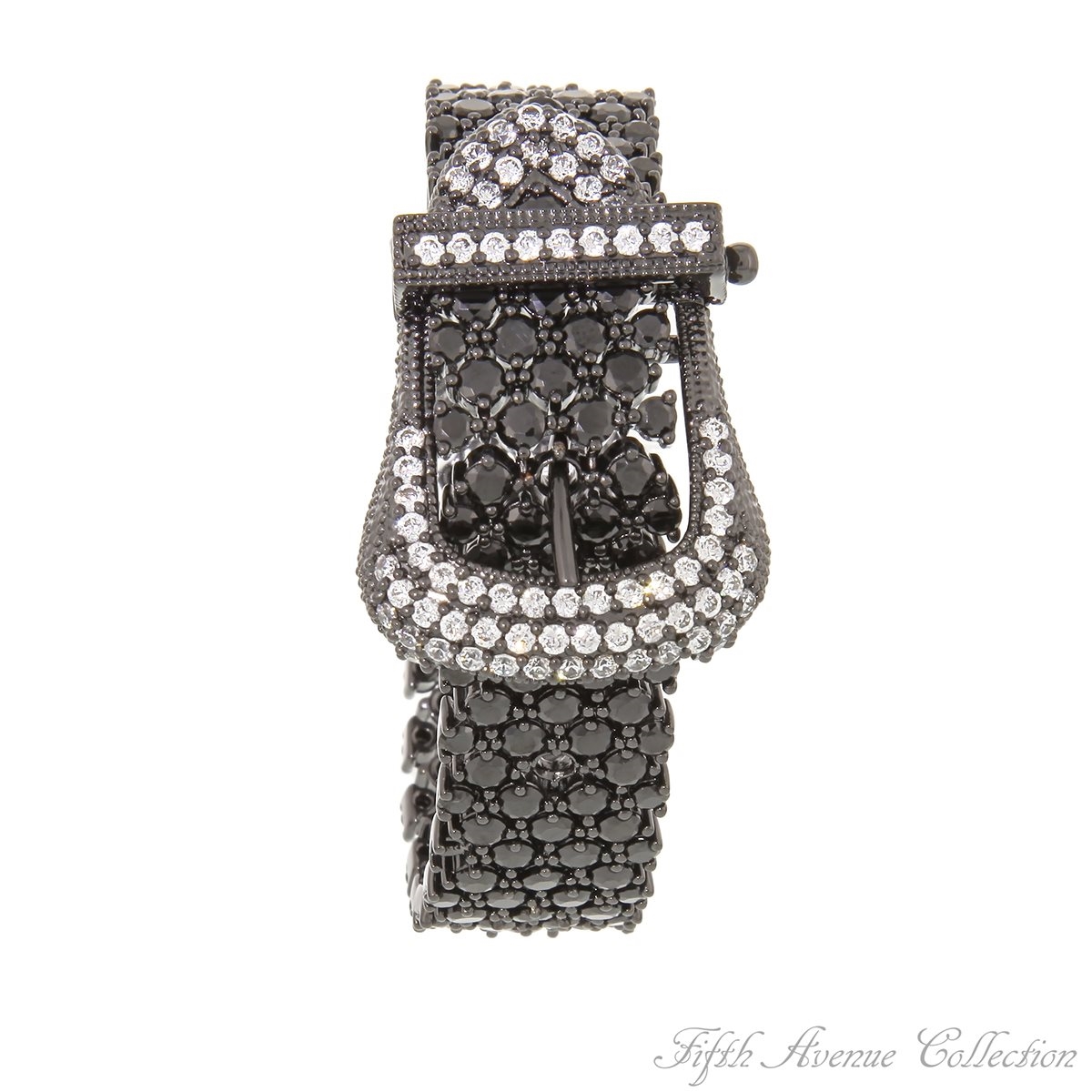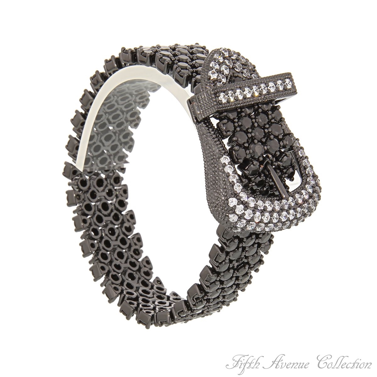 This look-great, classy bracelet is sure to rate a perfect ten! Fifth Avenue Collection’s talented goldsmiths create a look inspired by the glamorous flair found only in the high fashion streets of Paris. This sleek belt bracelet fashioned in a diamond set design, flashes with dozens of sizzling cubic zirconia, brilliant clears set in a rich rhodium finish or jet blacks set in dramatic hematite. Its stylish buckle with secure fold over clasp is studded with more sparkle to delight its wearer as she is admired for her excellent taste in beautiful accessories.