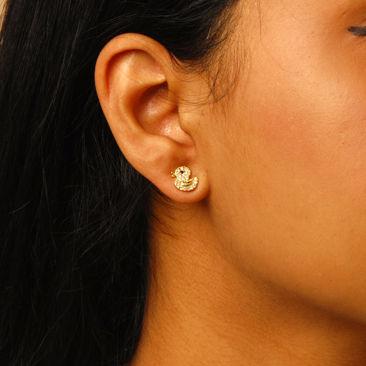 Our cute and dainty "Little Ducky" stud earrings boast sparkling Swarovski crystal finished in smooth gold that is sure to add a touch of whimsy to any girl's look. Sterling silver posts. Nickel and lead free jewellery.