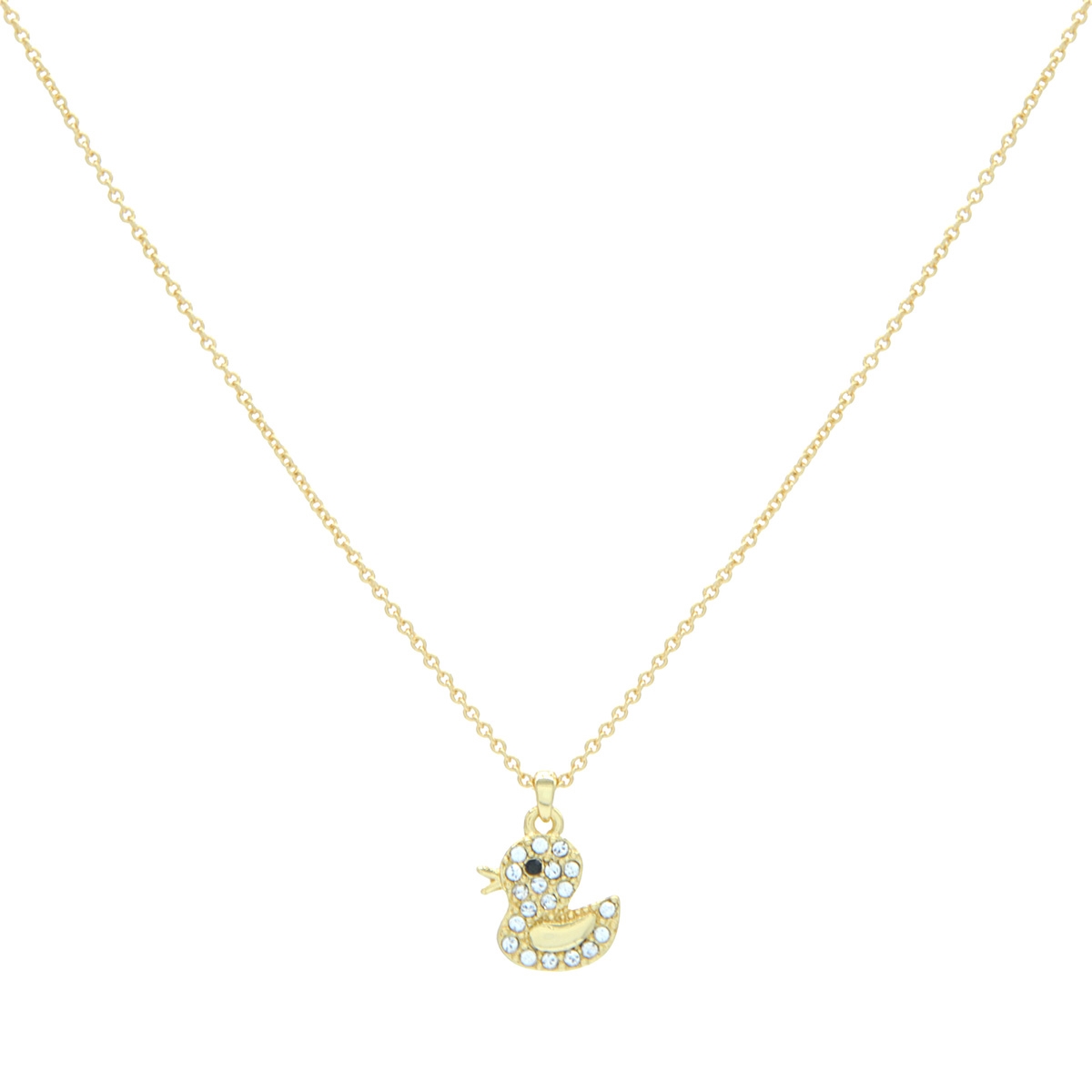 Our cute and dainty "Little Ducky" pendant boasts sparkling Swarovski crystal finished in smooth gold on a 14" designer chain that is sure to add a touch of whimsy to any girl's look. Nickel and lead free jewellery.