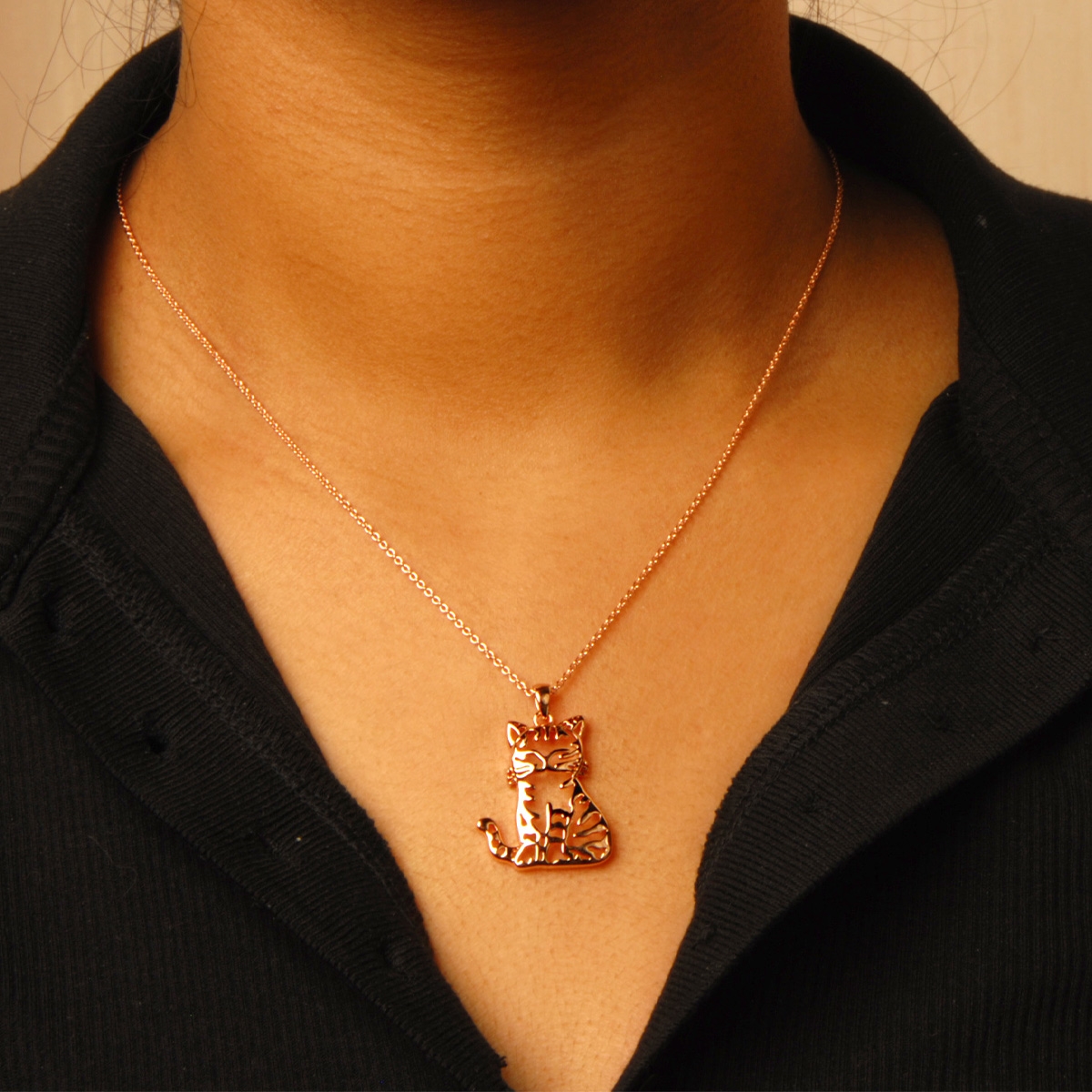 Showcase your feline love in style when you wear our beautiful "My Kitty" neckpiece, featuring a polished metallic cat outline pendant suspended from a sleek 18" designer chain. Nickel and lead free jewellery.