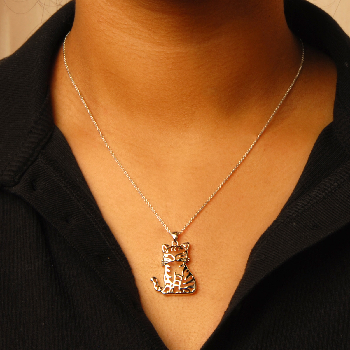 Showcase your feline love in style when you wear our beautiful "My Kitty" neckpiece, featuring a polished metallic cat outline pendant suspended from a sleek 18" designer chain. Nickel and lead free jewellery.