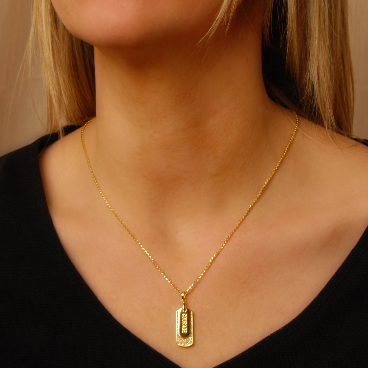 Strikingly gorgeous and empowering, our “Tags Of Inspo” neckpiece makes an inspirational fashion statement, featuring two designer tags, one studded with shimmering Swarovski crystal while the other offers a meaningful engraving, suspended from a sleek 18" chain. Nickel and lead free jewellery.