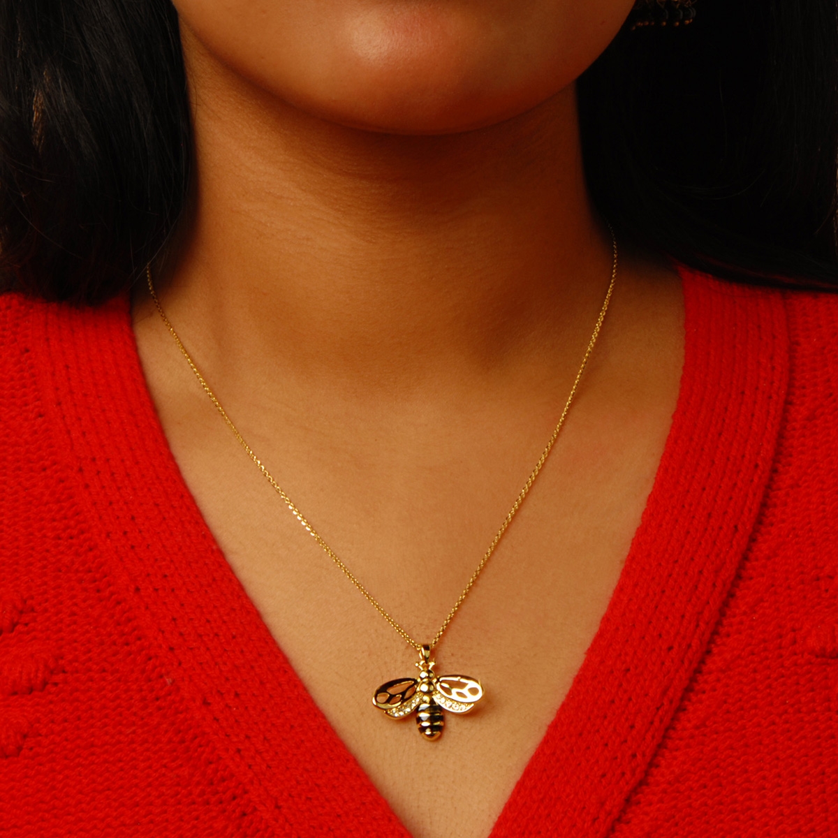 Our "Whimsical Bee" pendant is light-hearted and ready for any adventure! The charm of nature is abundant in this beautifully detailed design featuring sparkling clear Swawrovski crystal and hand-painted black enamel. 18" neckpiece with 2" extension. Nickel and lead free jewellery.