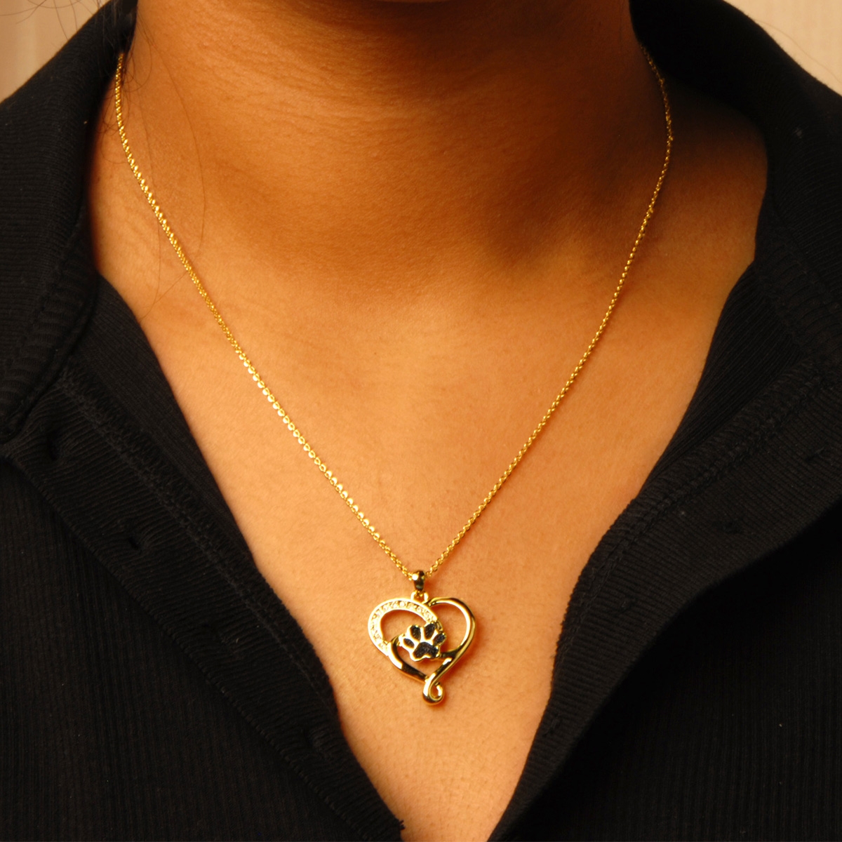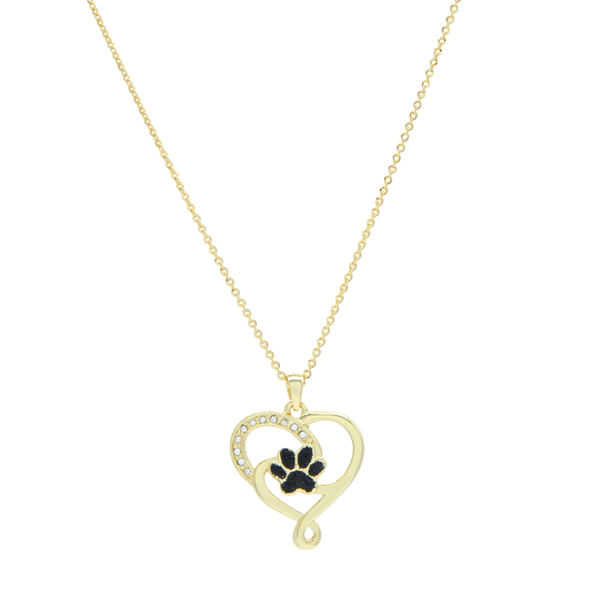 A sweet design for all of the pet lovers out there, our "Cherished Pup" neckpiece flaunts a beautiful heart shaped design adorned with sparkling Swarovski crystals linked with an adorable puppy print shimmering with black diamond dust. Suspended from an 18" designer chain, this lovely pendant showcases the adoration between pet owner and pet. Nickel and lead free jewellery.