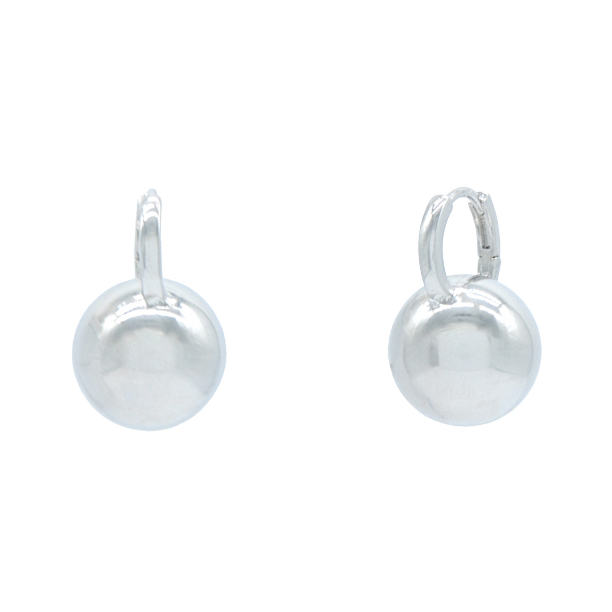The perfect pairing, a stylish huggie hoop design accompanied by a sleek metallic ball creates our perfectly on-trend "Contemporary Details" earrings. Sterling silver posts. Nickel and lead free jewellery.