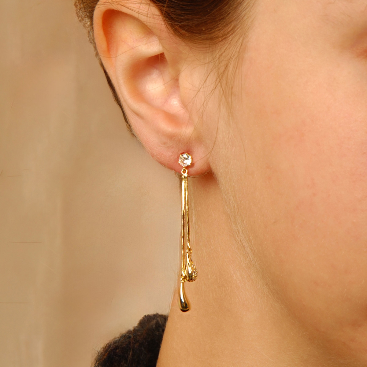 Sure to draw infinite compliments, our fun and flirty "Dangle & Fine" drop earrings feature elegant length and brilliant clear Swarovski crystals. Sterling silver posts. Nickel and lead free jewellery.