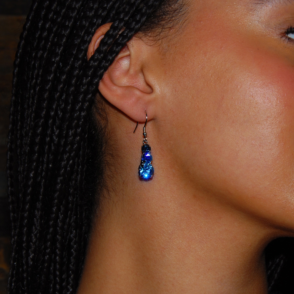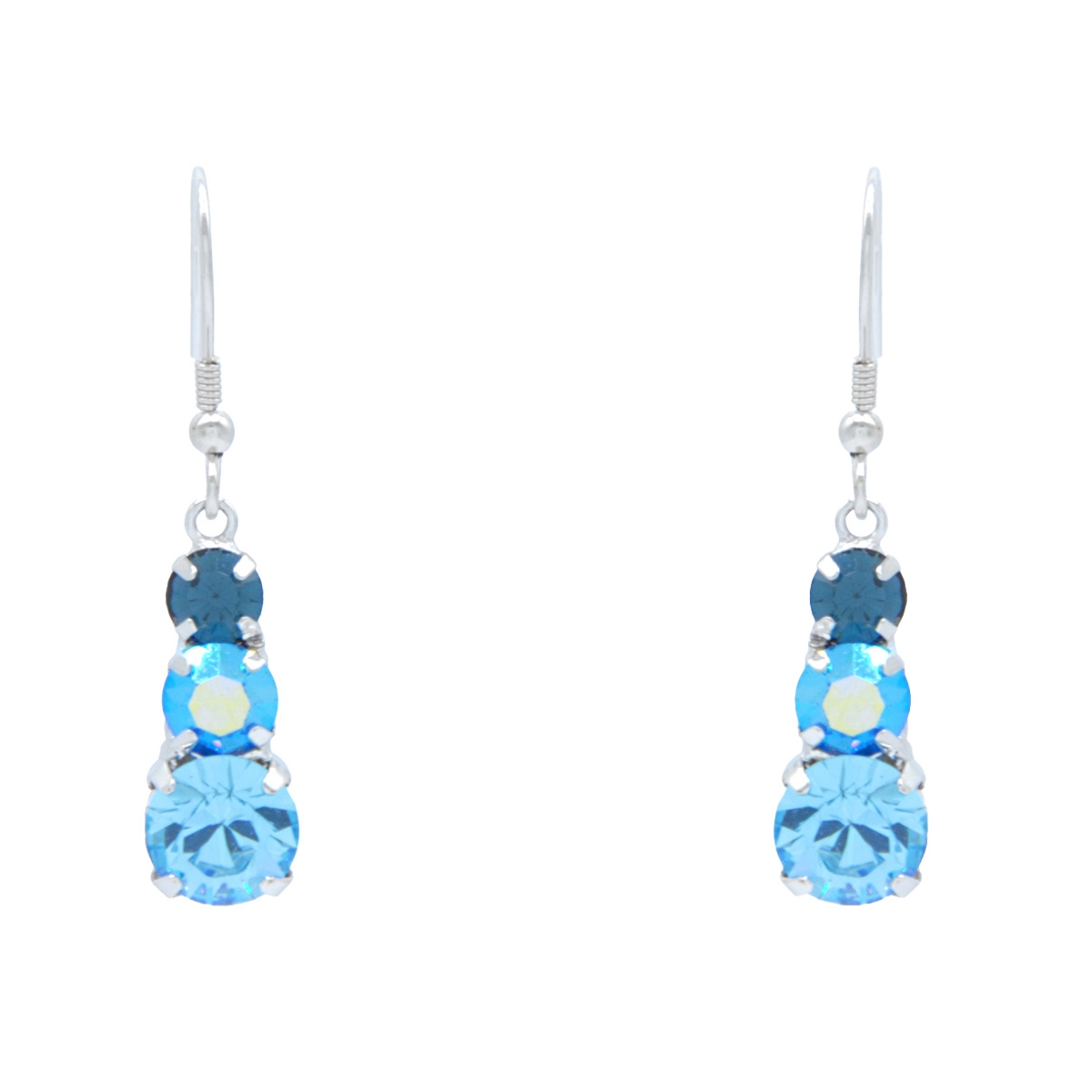 Showcasing exquisite multi-colored blue Swarovski crystals suspended on sterling silver hooks, our gorgeous "Delicate Trio" earrings deliver a colorful touch of sparkle! Nickel and lead free jewellery.