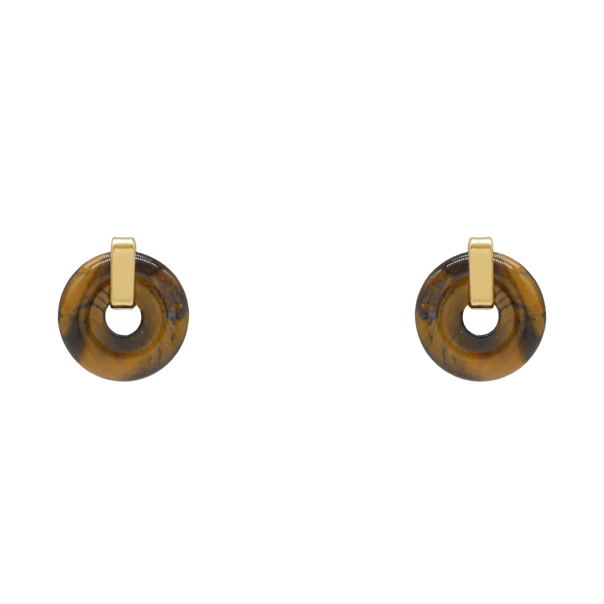 Add a beautiful pop of style to your look when you wear our "Eternally Trendy" earrings. Flaunting an open gemstone circle finished with a sleek golden bar, you are sure to make a naturally lovely fashion statement. Sterling silver posts. Nickel and lead free jewellery.