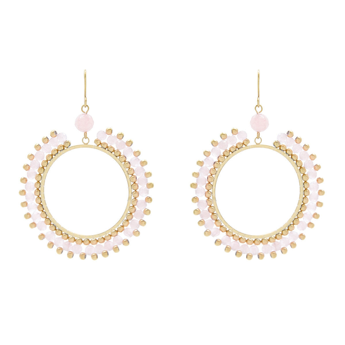 Make an audacious fashion statement with our gorgeously unique "Exotic Detailing" earrings. Featuring a unique and bold geometric design showcasing alluring genuine gemstone beads in a stunning circle finished in gleaming gold suspended from sleek sterling silver hooks. Nickel and lead free jewellery.