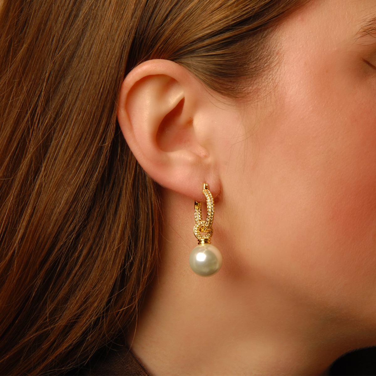 Classic romance with a twist, our "Fancy & Pearls" earrings showcase exquisite hoops of glamorous sparkling AAA cubic zirconia accompanied by stunning pearl drops. Sterling silver posts. Nickel and lead free jewellery.
