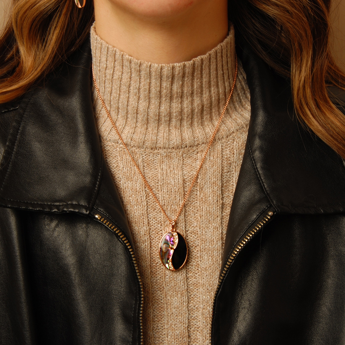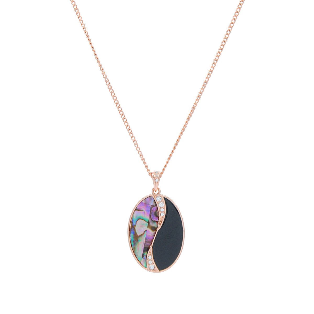Beautiful and inspiring our stunning "Genuinely Mixed" pendant boasts a rich and colorful combination of genuine paua shell and gleaming black onyx with a touch of Swarovski crystal shimmer suspended from a sleek 18" designer chain. Nickel and lead free jewellery.