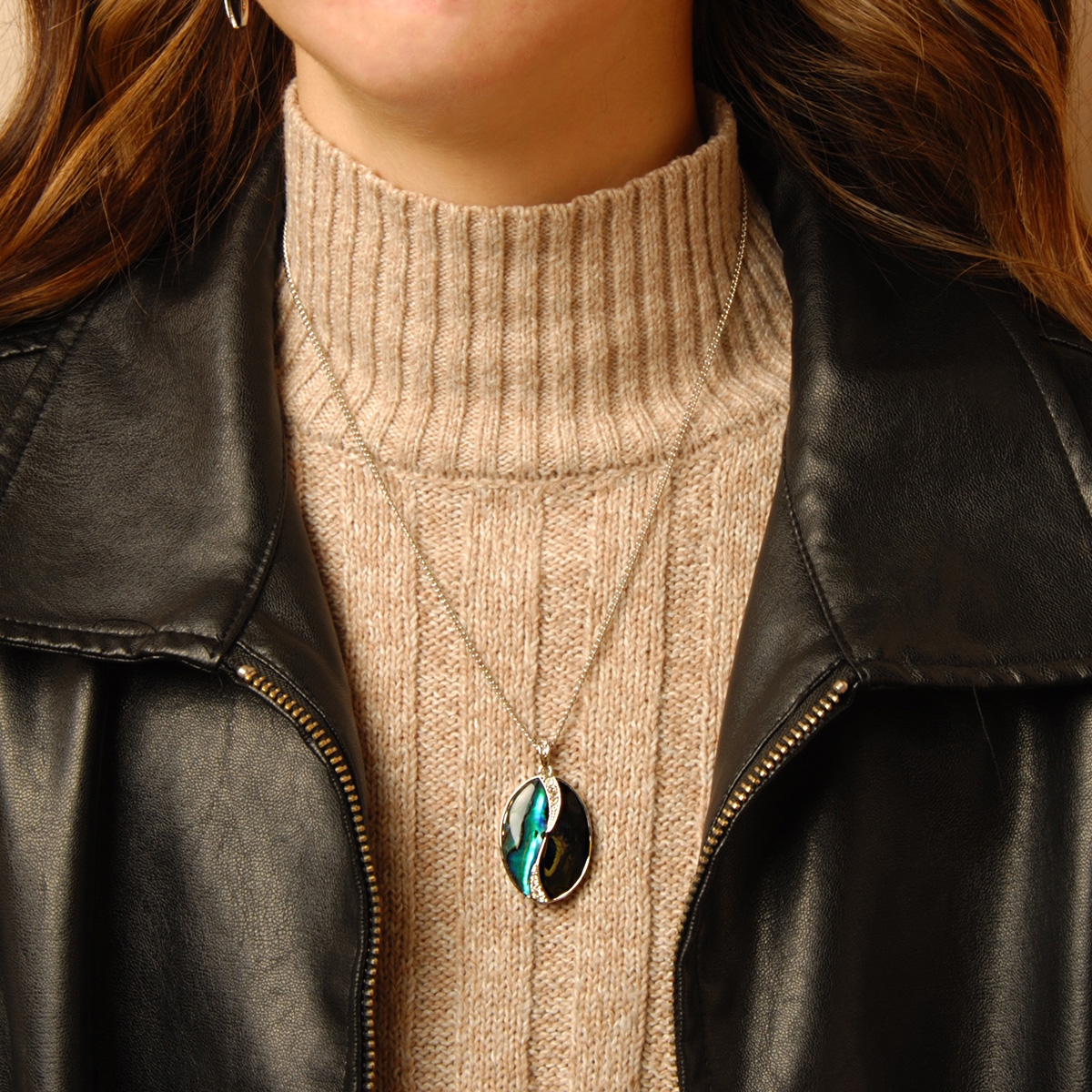 Beautiful and inspiring our stunning "Genuinely Mixed" pendant boasts a rich and colorful combination of genuine paua shell and gleaming black onyx with a touch of Swarovski crystal shimmer suspended from a sleek 18" designer chain. Nickel and lead free jewellery.