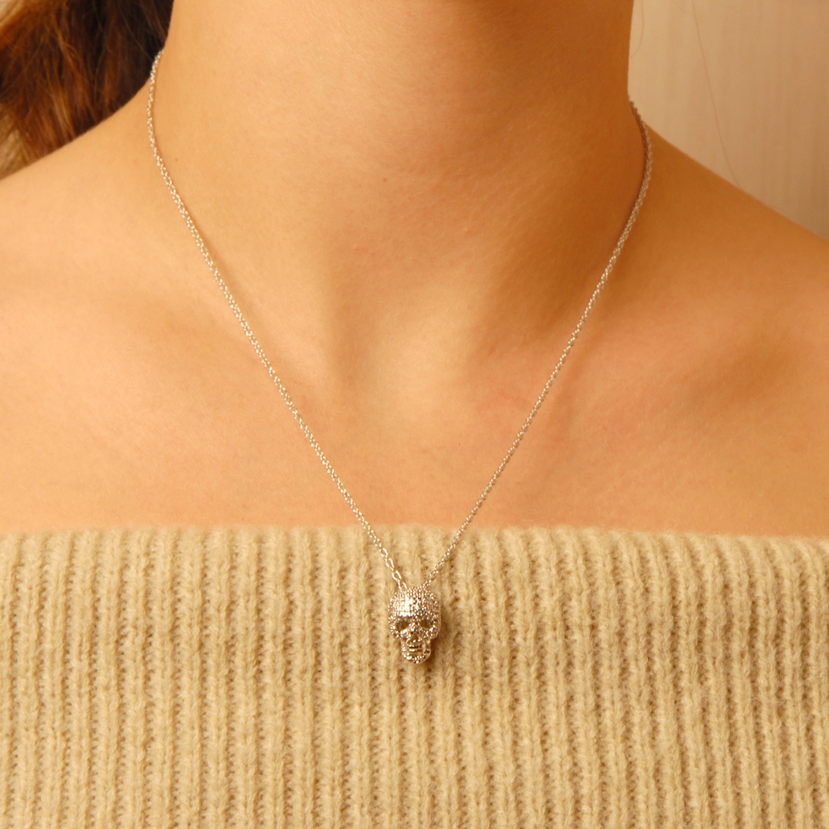 Add some festively spooky glam to your look with our Halloween inspired "Gothic Icon" design, boasting skulls embellished with glimmering cubic zirconia suspended from an 18" designer chain. Nickel and lead free jewellery.