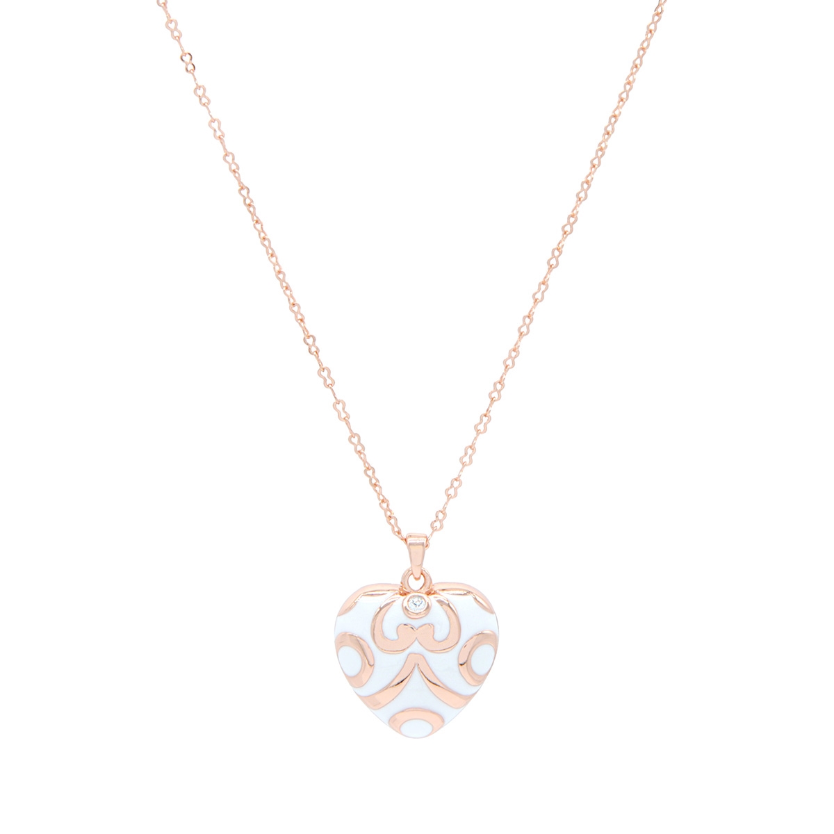 Feel the love when you wear our beautiful "Hearts & Swirls" neckpiece. Featuring smooth white hand-painted enamel, swirls finished in rich rose gold and a sparkling Swarovski crystal on a sleek 18" designer chain. Nickel and lead free jewellery.