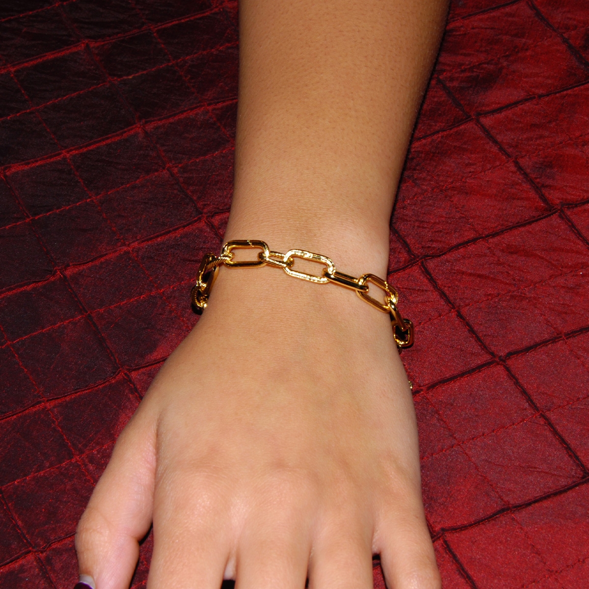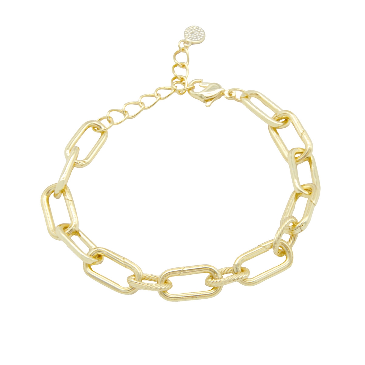 A perfect fashion staple for any outfit, our "I Truly Care" bracelet flaunts a sleek intricately textured paper clip chain with self-opening links giving you an ingenious way to adorn your bracelet with beautiful charms. This timeless design will beautifully personalize any look. Nickel and lead free jewellery.
