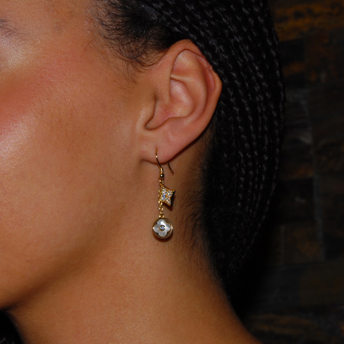 Accent your beautiful style when you wear our "Intricate Luxury" earrings. Boasting stunning mother of pearl and sparkling clear Swarovski crystal in a geometric drop design, these exquisite, handmade fashion accessories are a must to add to your collection! Sterling silver hooks. Nickel and lead free jewellery.