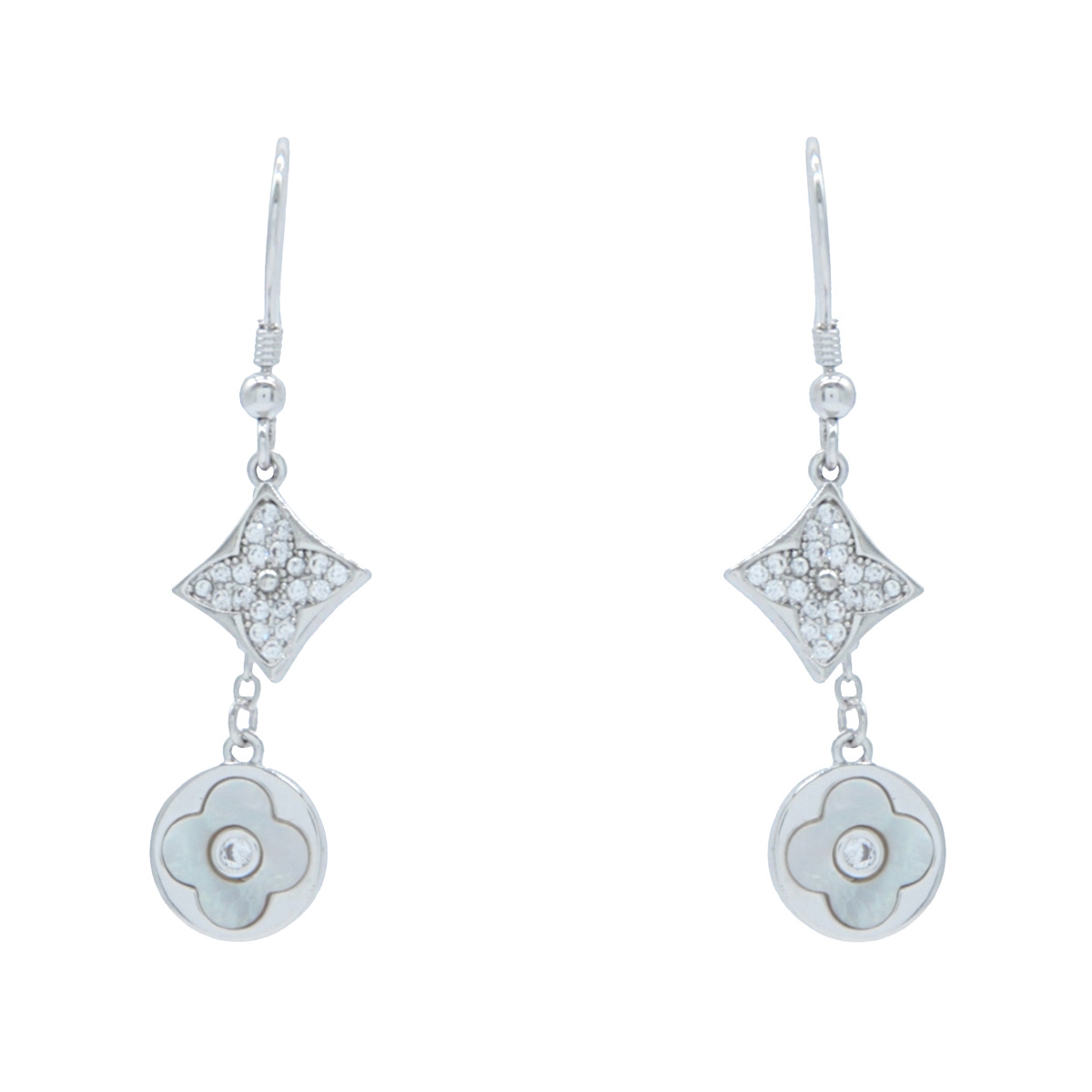 Accent your beautiful style when you wear our "Intricate Luxury" earrings. Boasting stunning mother of pearl and sparkling clear Swarovski crystal in a geometric drop design, these exquisite, handmade fashion accessories are a must to add to your collection! Sterling silver hooks. Nickel and lead free jewellery.