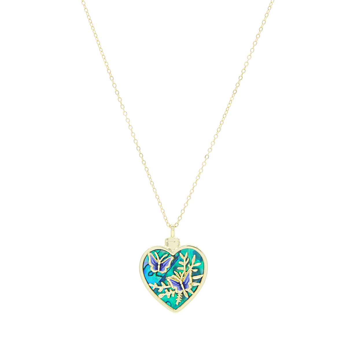 Immaculately designed, our "Luminous Flight" neckpiece flaunts a stunningly unique paua shell heart pendant accented with intricate hand-painted enamel butterflies, suspended from a sleek 19” designer chain to add a perfect touch of natural elegance to your look. Nickel and lead free jewellery.