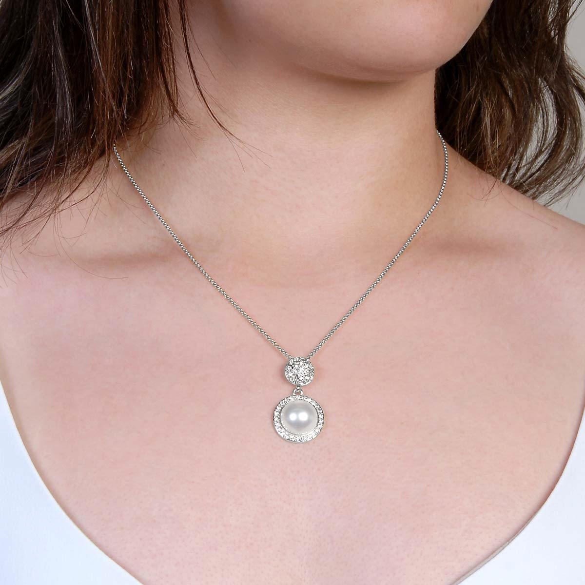 Refined and feminine ,our "Pearl Of Wisdom" drop pendant flaunts exquisite Swarovski crystals with a luminous pearl center suspended from a sleek 18" designer chain giving you a beautiful and sweet look! Nickel and lead free jewellery.