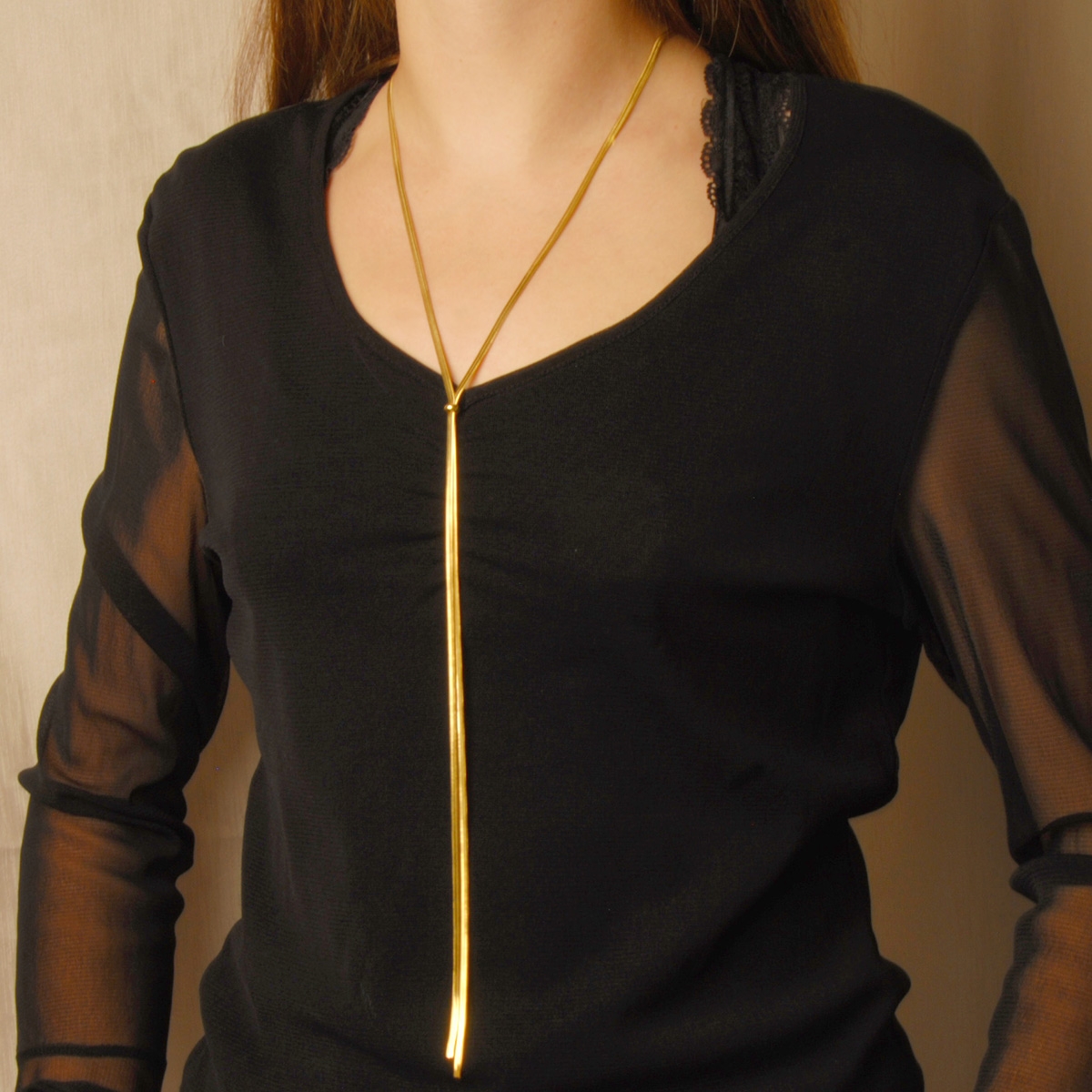 Our glimmering "Polished Lines" neckpiece flaunts a sleek on-trend "Y" shaped design. Complete with a gleaming metallic slide, this adjustable fashion accessory is simple in design yet sure to make a bold statement. 43" neckpiece. Nickel and lead free jewellery.