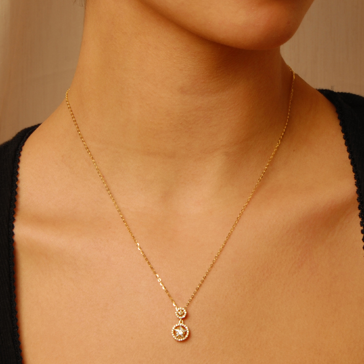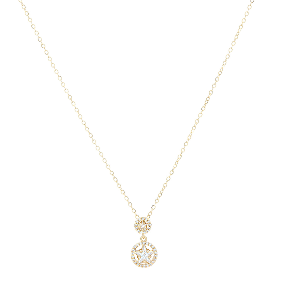 Our striking "Radiant Stars" neckpiece flaunts a little sparkling AAA cubic zirconia star sitting elegantly in a sleek circular design creating a beautiful on-trend fashion statement. 18" neckpiece with 2" extension. Nickel and lead free jewellery.