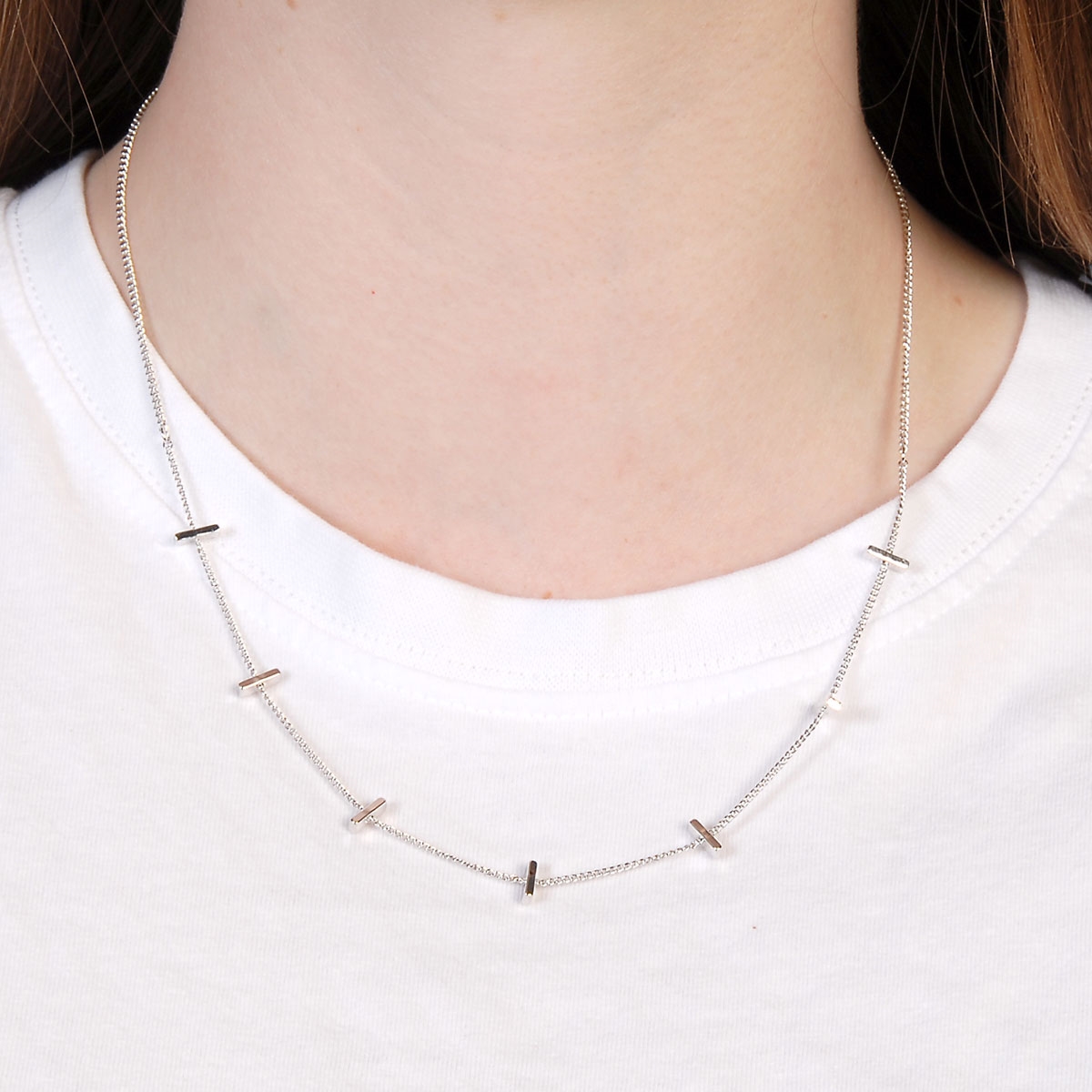Perfect for everyday wear our "Simple Obsession" neckpiece flaunts an array of minimalistic sleek bar detailing set beautifully in a fine 18” designer chain. This classic essential is gorgeous when worn alone or layered up! Nickel and lead free jewellery.