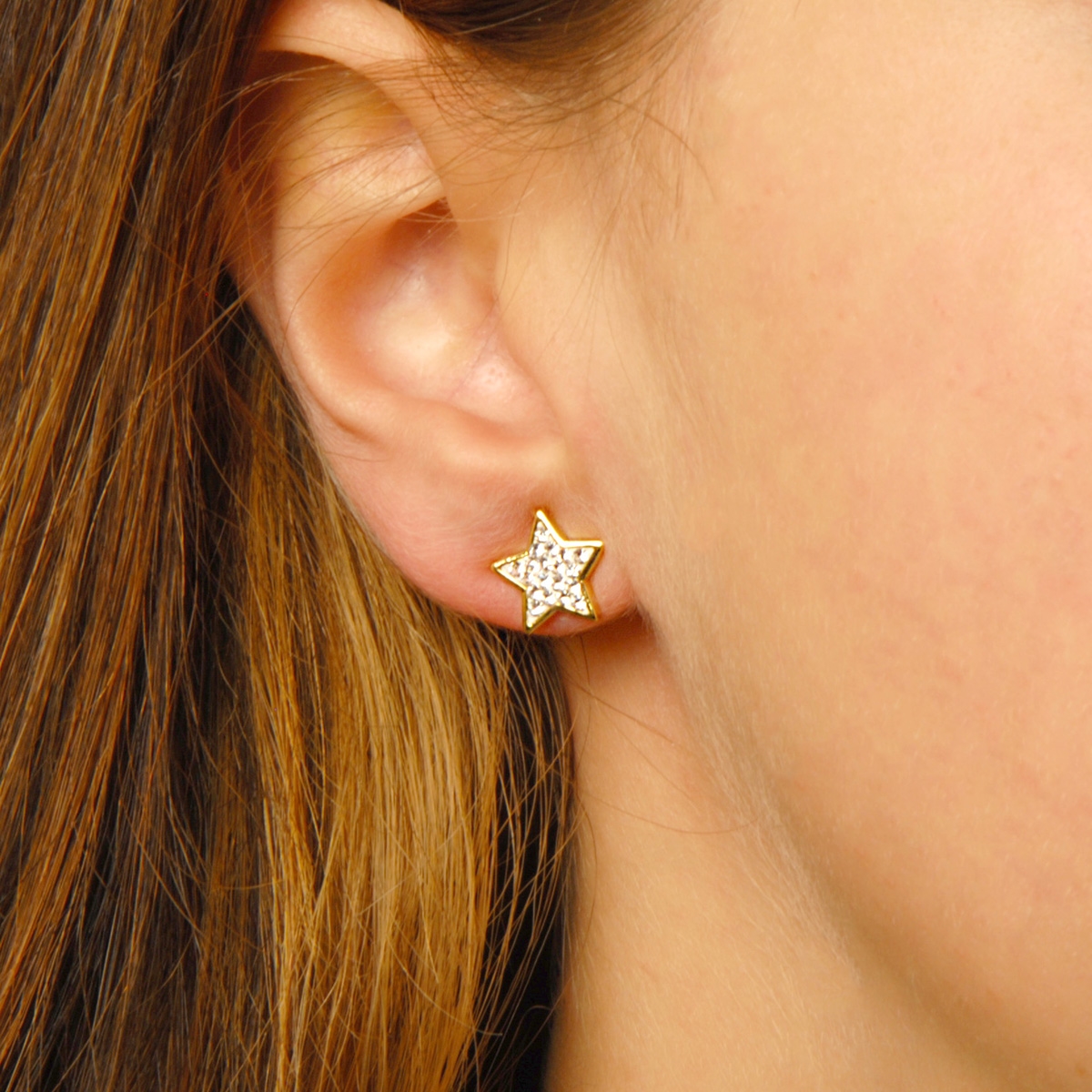 Cosmically inspired our twinkling "Stargazing Shimmer" earrings flaunt charming star-shaped studs encrusted with Swarovski crystal for a brilliant touch of sparkle. Sterling silver posts. Nickel and lead free jewellery.