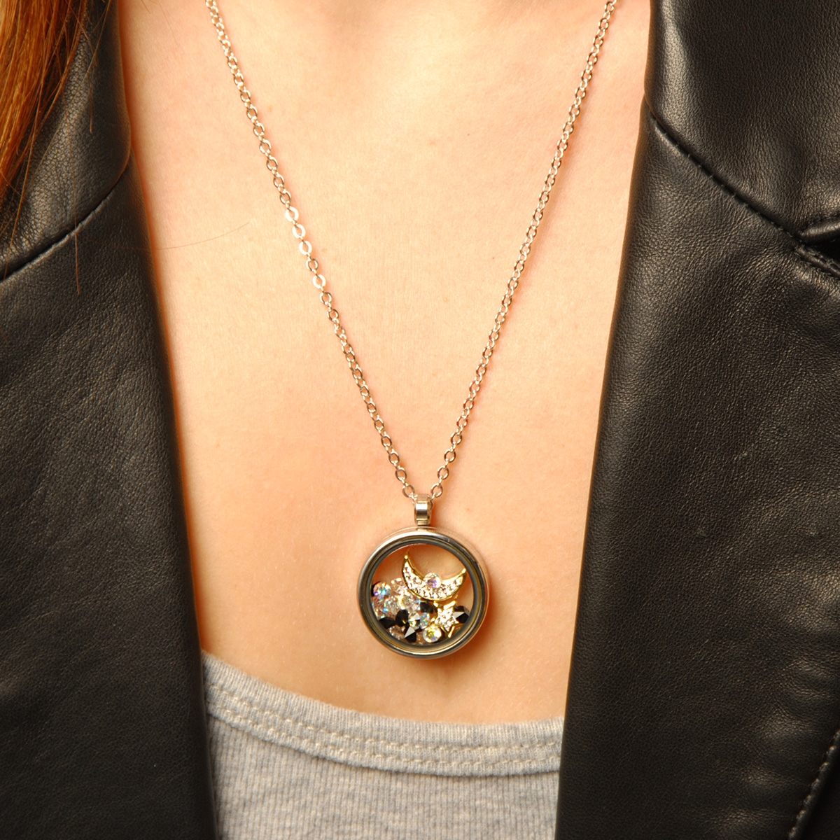 Cosmically inspired our on-trend "Stargazing Shimmer" neckpiece flaunts a charming circular pendant that hosts a shimmering collection of crystals along with a delightful moon and star encrusted with Swarovski crystal. 19" neckpiece with 2" extension. Nickel and lead free jewellery.