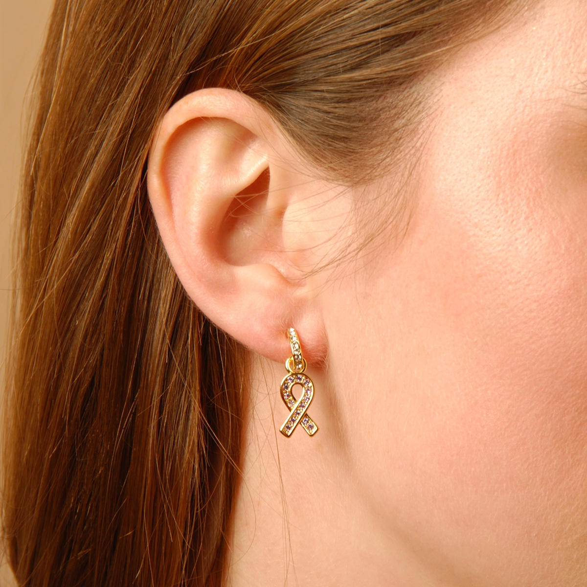 A symbol of support and survival, our beautiful "Strength And Support" stud earrings feature the signature ribbon sparkling with lilac Swarovski crystals. Sterling silver posts. Nickel and lead free jewellery.