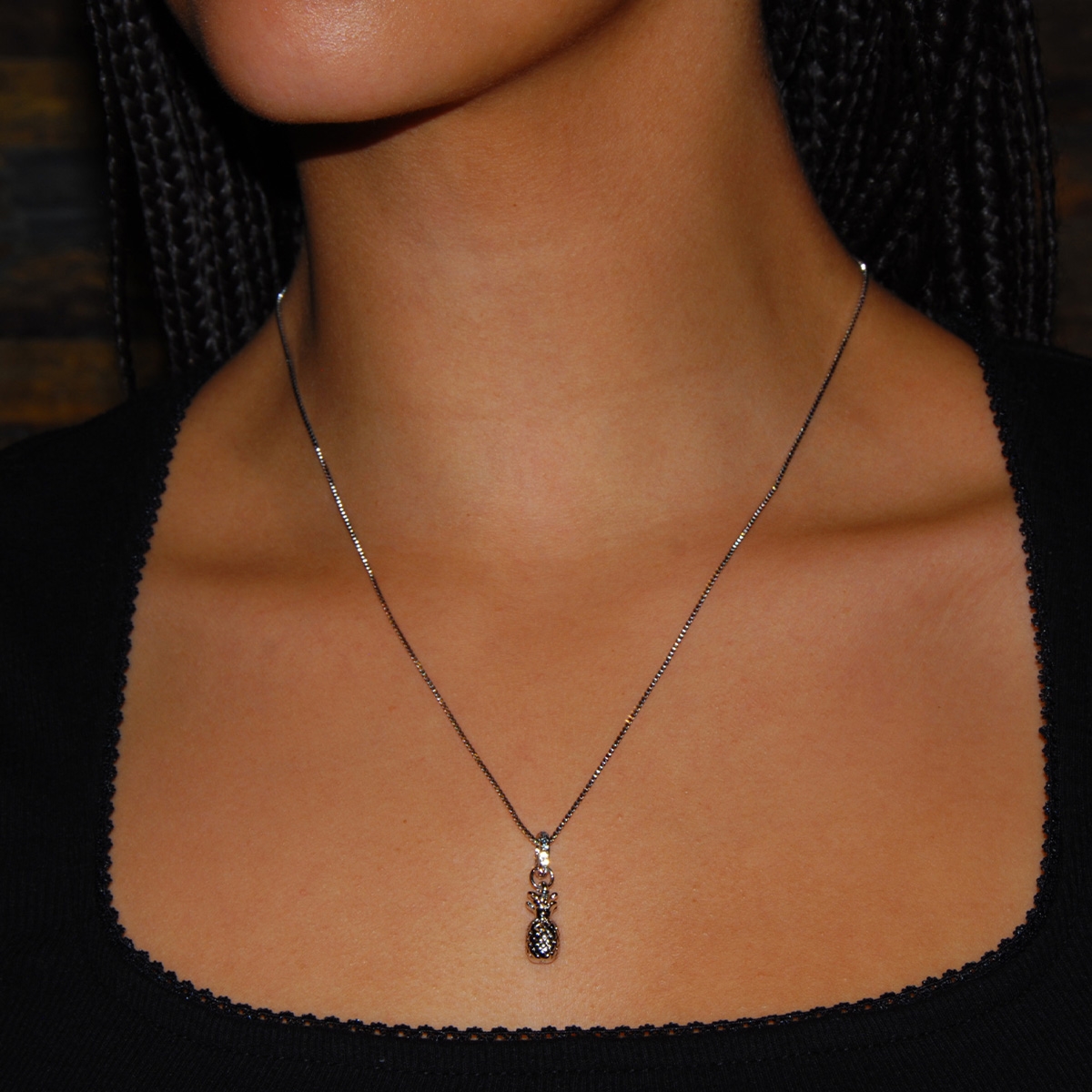 A beautiful symbol of hospitality, welcome, and friendship, our delightful "Sweet Tropics" charm is sure to sweeten any look. Boasting an intricate rhodium finished pineapple design suspended from a sparkling bail encrusted with clear Swarovski crystal, this fun charm is the perfect addition to FAC's "I Truly Care" bracelet or "Finer Things" chain. Nickel and lead free jewellery.