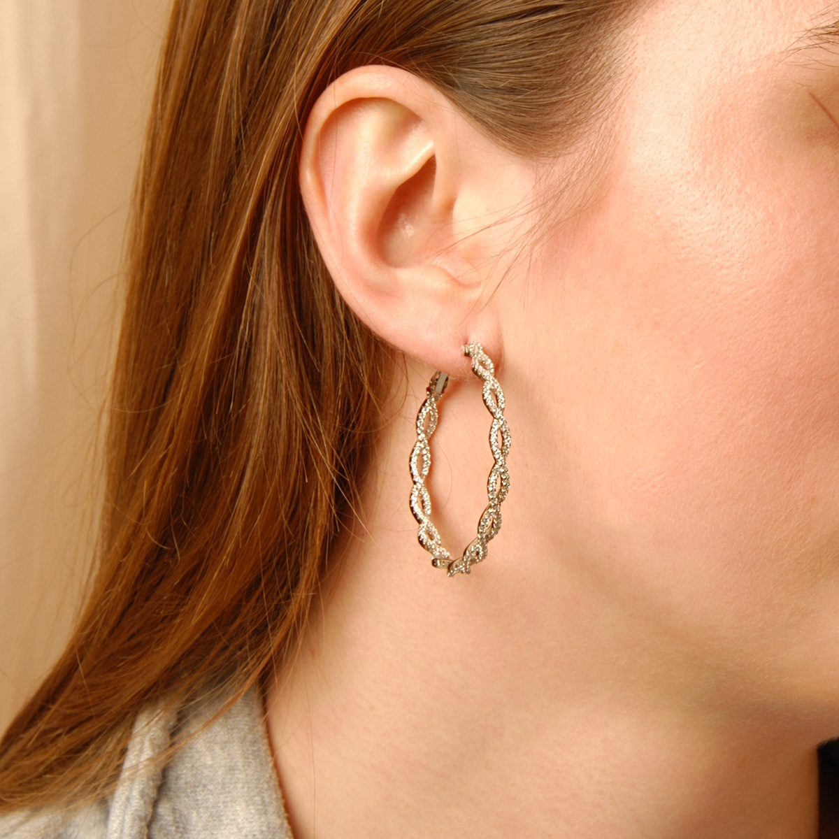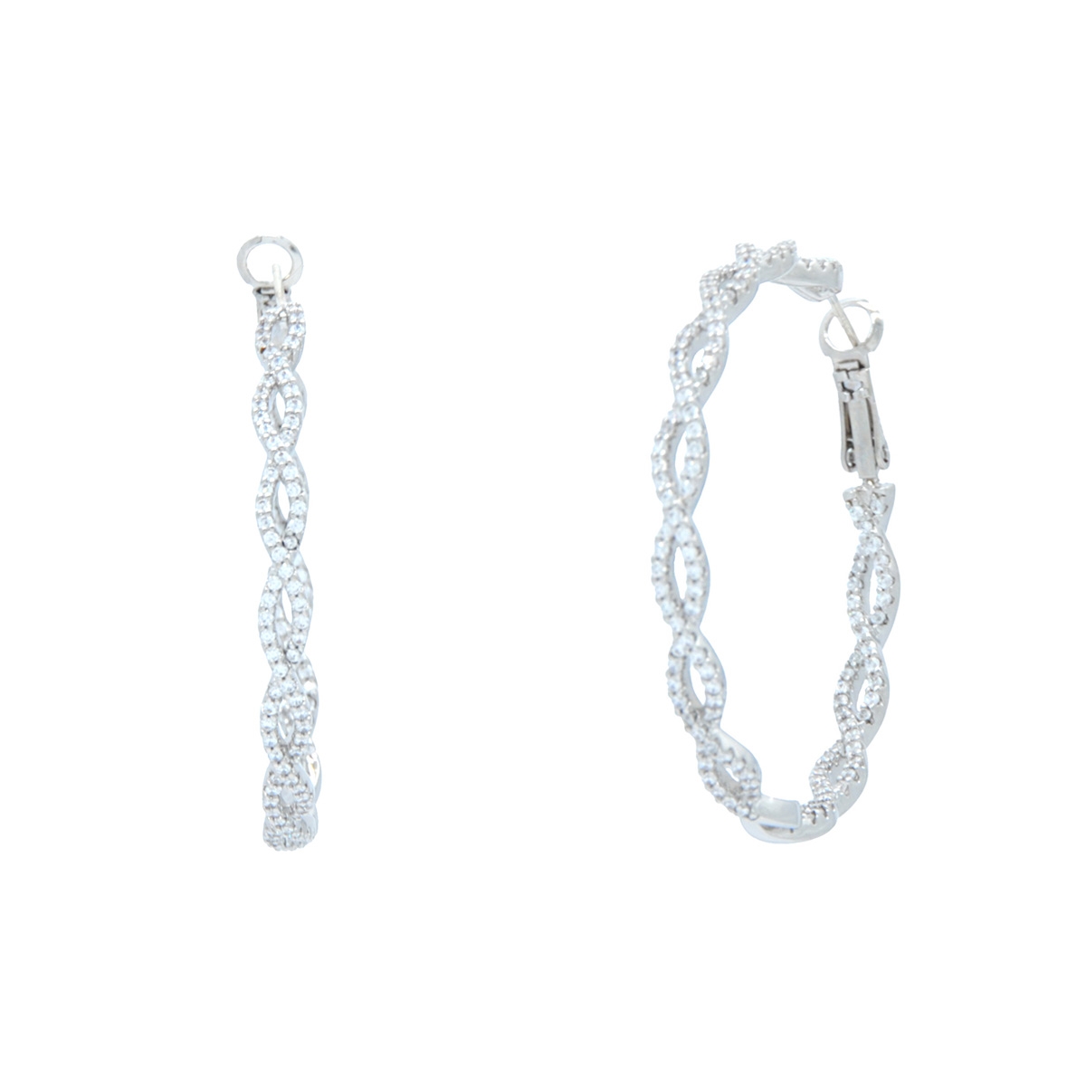 Our radiant "Textured Glow" hoop earrings flaunt a glistening woven design studded with AAA cubic zirconia to add the perfect touch of sparkle and style to any outfit. Sterling silver posts. Nickel and lead free jewellery.
