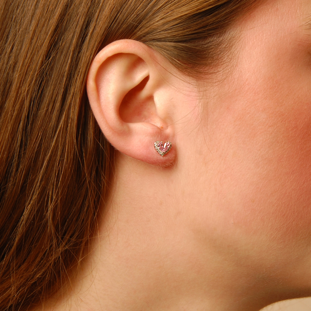 Sweet and stylish our adorable "Tiny Hearts" earrings flaunt colorful AAA zirconia hearts surrounded by shimmering clears for the perfect touch love. Sterling silve posts. Nickel and lead free jewellery.