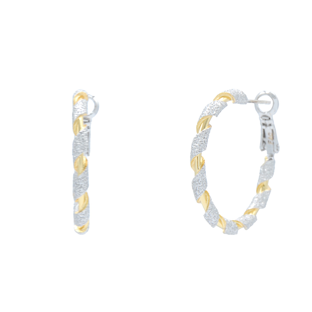 Our delightful “Twisted Splendor” earrings add a touch of style to your look! Featuring a rich two-tone metallic finish, these mid-size hoops are sure to become an everyday favourite! Sterling silver posts. Nickel and lead free jewellery.