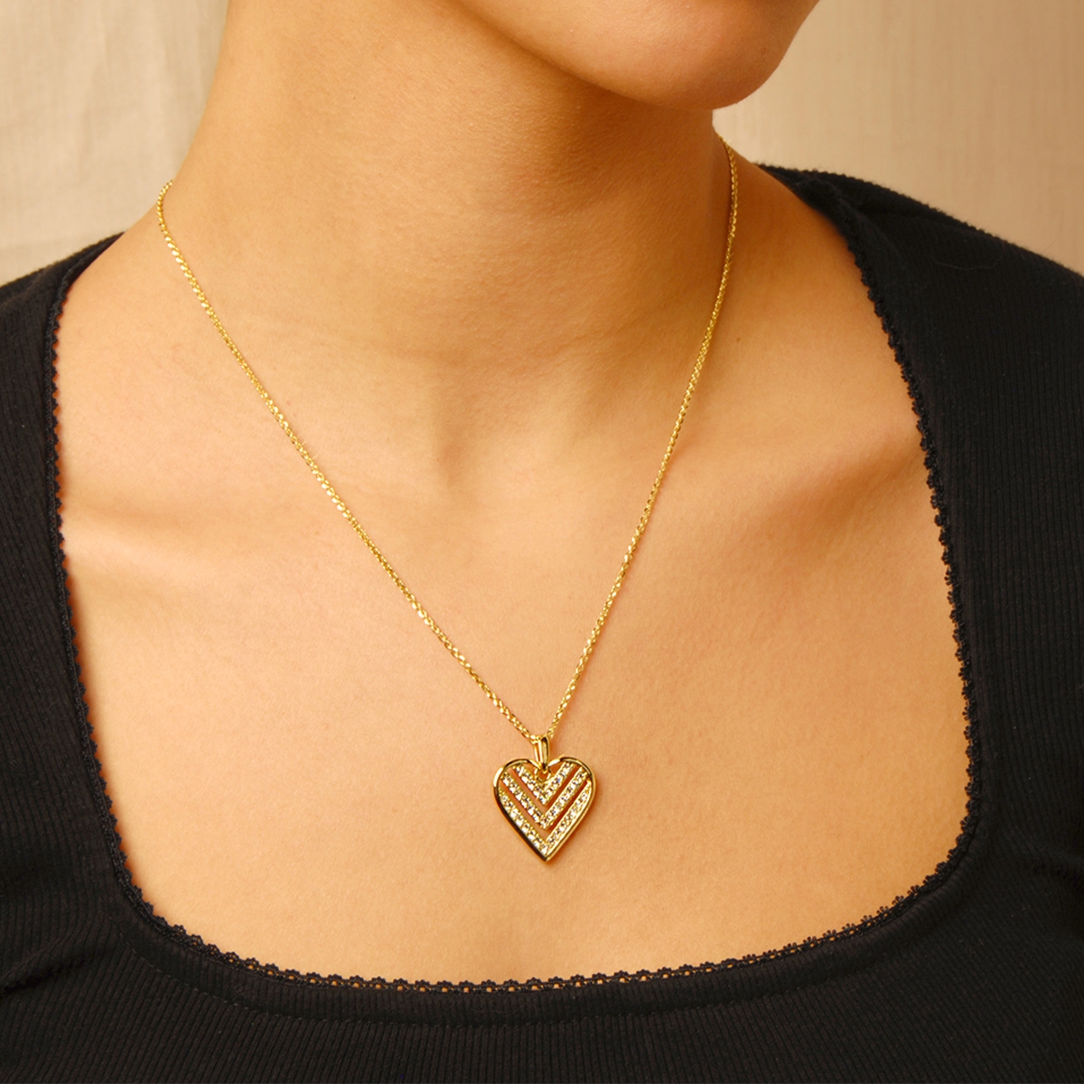 Add a lovely touch of sparkle to your look when you wear our stunning "When Hearts Align" neckpiece, showcasing an elegant heart-shaped design encasing sparkling geometric lines of Swarovski crystal on a fine 18" designer chain. Nickel and lead free jewellery.