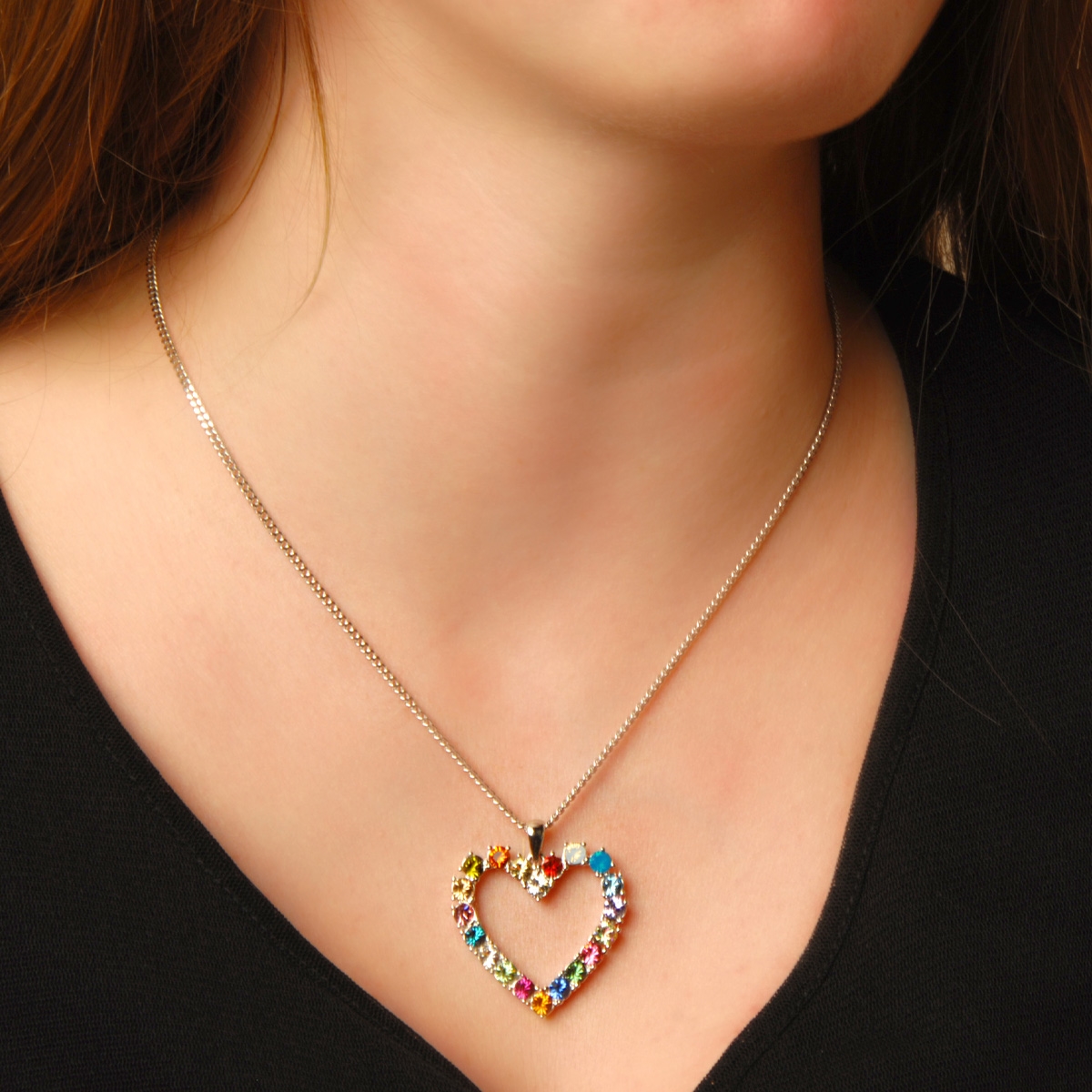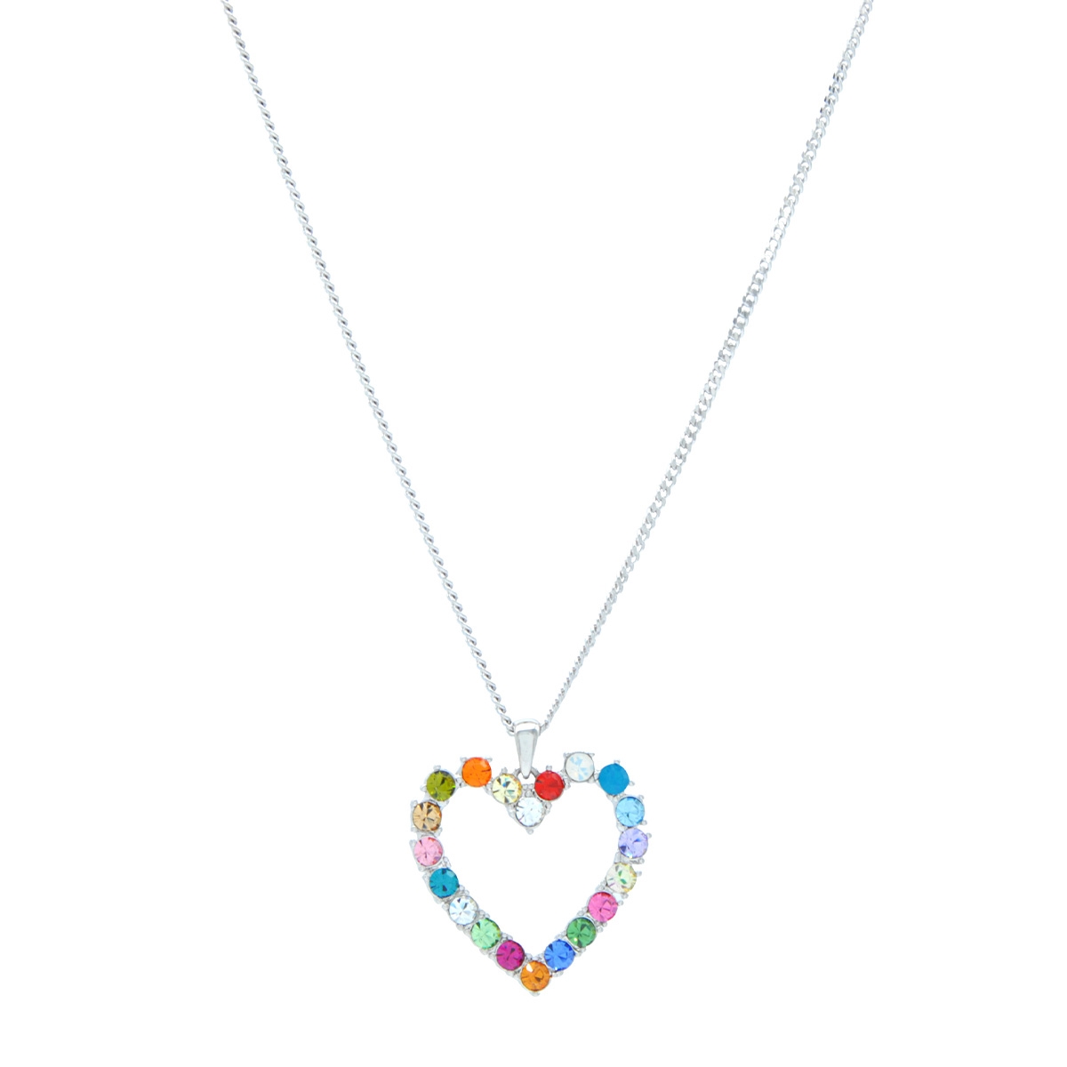 Bold, bright and full of color our shimmering "You Are My Sunshine" heart pendant boasts a radiant rainbow of Swarovski crystal suspended from a sleek 19" designer chain. Nickel and lead free jewellery.